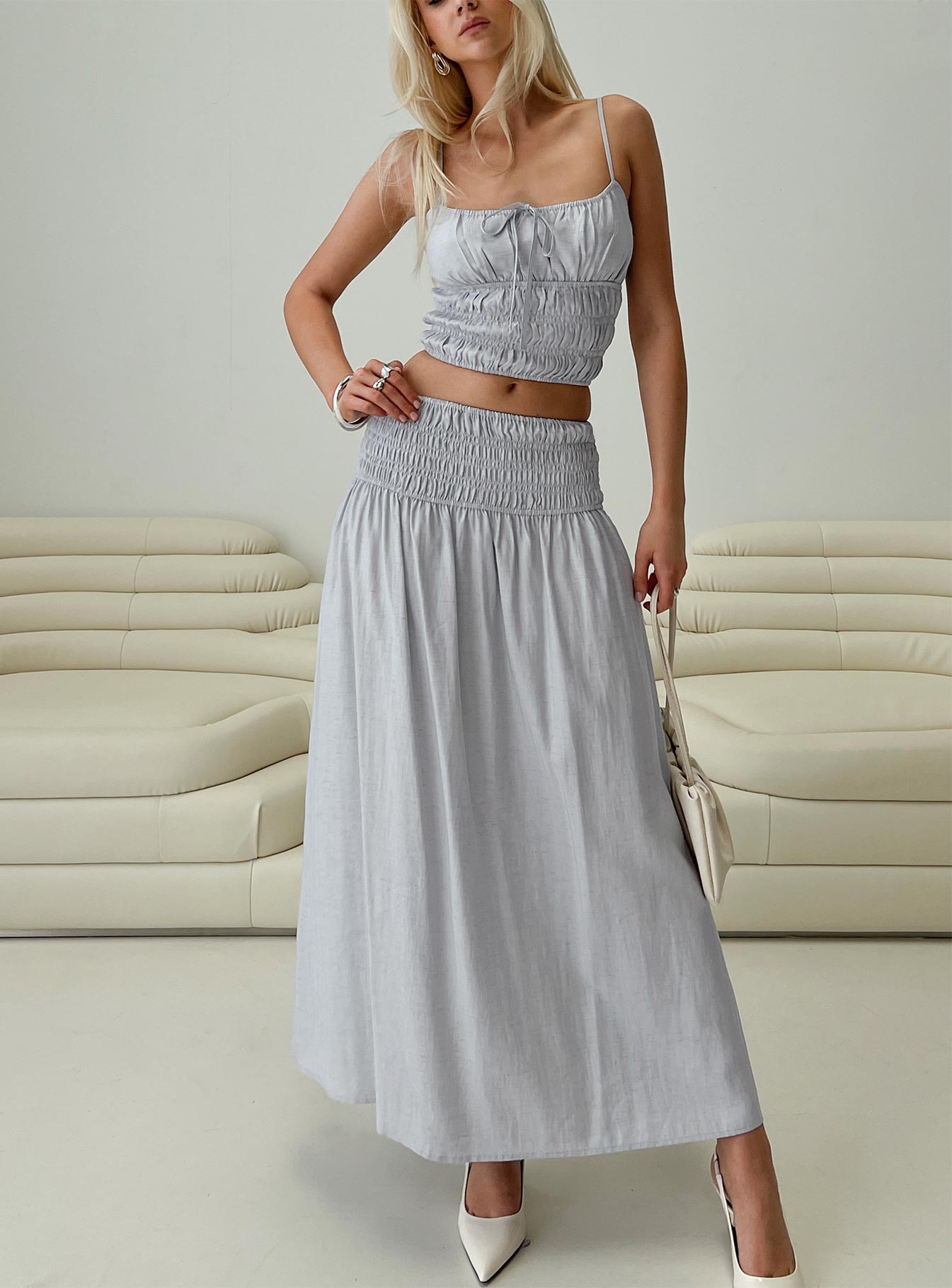 • Shirred, tie fastening, adjustable shoulder straps, elasticated waistband, relaxed fit