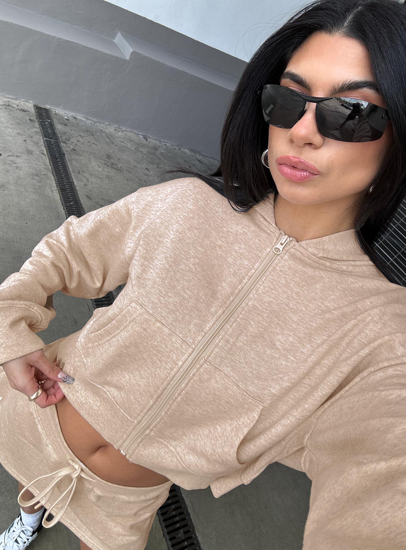 • Long sleeve zip-through hoodie